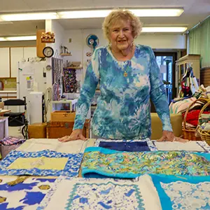 Ninety-year-old Los Angeles Jewish Health resident Norma Garber is passionate about her craft. Trained as a dressmaker during her youth in England, Norma has spent a lifetime honing her sewing abilities – skills she deploys with stunning results as one of the most prolific artisans at work in the vibrant Arts and Crafts Room on the Eisenberg Village campus.