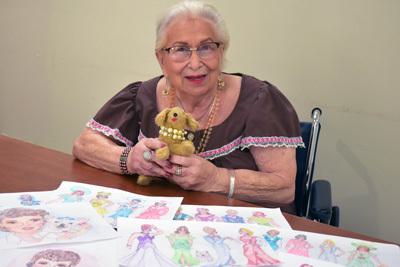 Soon after, Marilyne saw the activities room, with its reams and reams of cloth, and she knew she had found her place. Today, she has become very well-known at the Jewish Home for a different kind of design: the sewing of adorable little stuffed dogs that bring joy to all who see them. The dogs are special. Boy dogs don a yarmulke, and female dogs wear babushkas. Marilyne's special stuffed dog, named Mendel, sports a beautiful pearl bracelet as a collar. She jokes Mendel "stole" it from her. By her estimate, she has made hundreds of the little friends since coming to the Home. One of her ongoing passions is teaching others to make them, and she points out that the activity is great for the mind and for maintaining dexterity.
