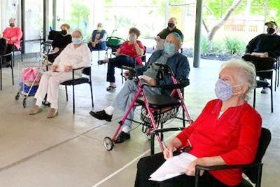 Not only were residents delighted to be attending the service—there was pure joy in seeing one another. A staff member was stopped as she walked by, by a woman who requested she tug on the sleeve of another nearby resident to get her attention so that the two friends could safely reconnect prior to services starting. They told one another how great each looked.